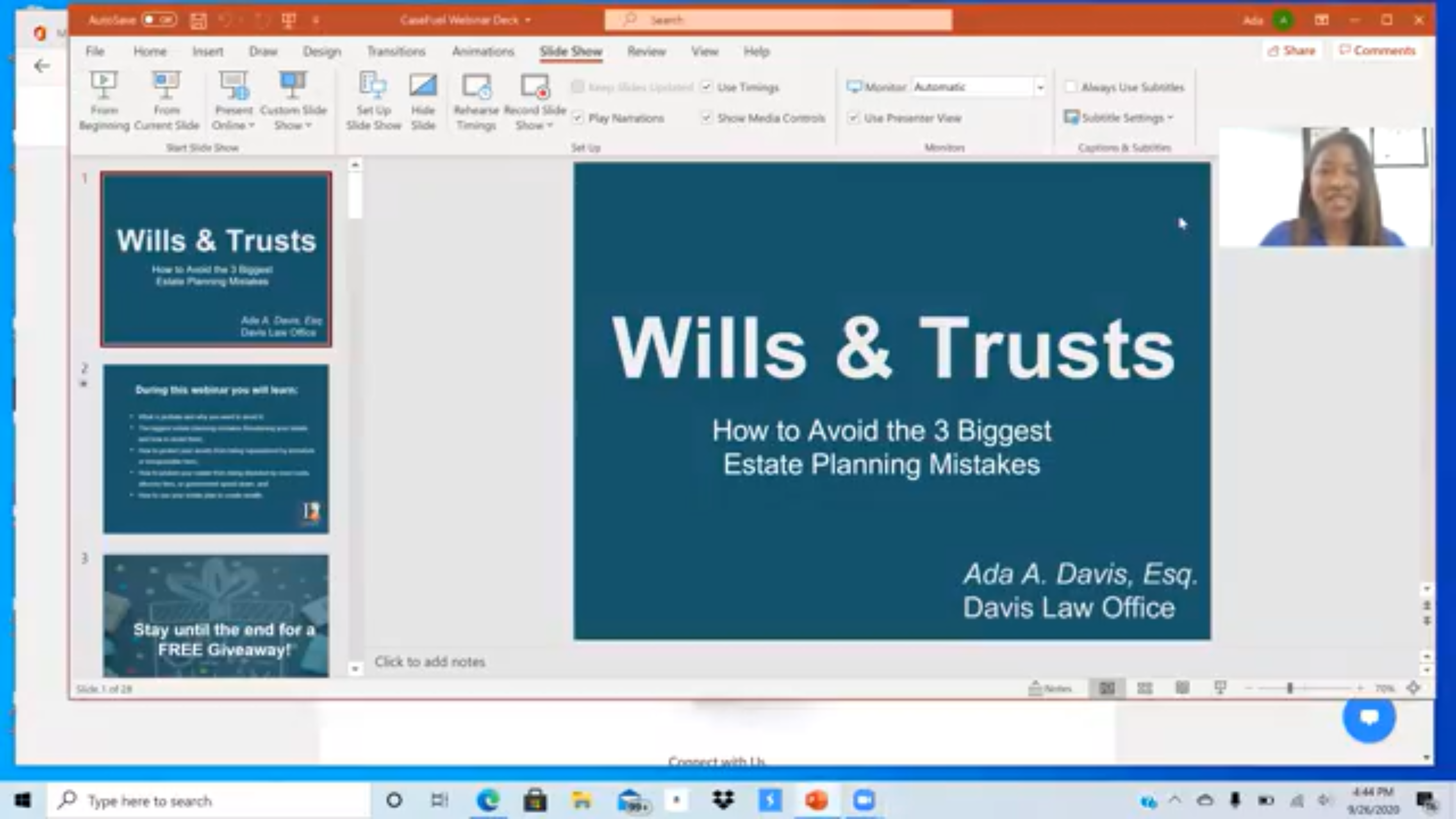 Presenter: Ada A. Davis, Esq., The Legacy Attorney